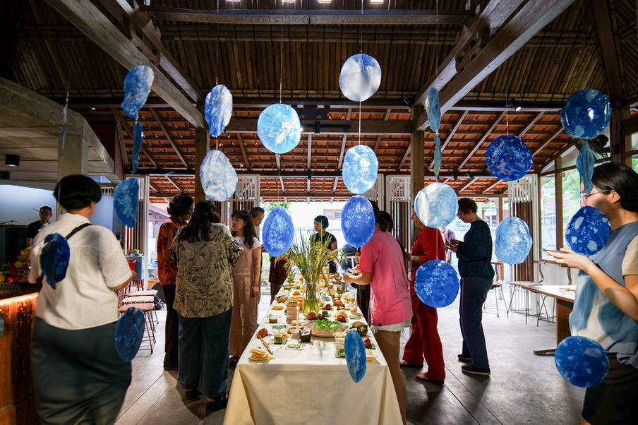 Hung like a “curtain,” the cyanotyped rice papers form a soft boundary between homes, presence, and absence. Ephemeral as food yet preserved by light, the installation reflects how materials, memories, and identities shift over time, shaped by cycles of growth, transformation, and impermanence.